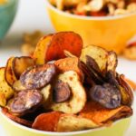The best part about these potato chips is that they actually taste like potatoes, not merely oil and salt. Move beyond the white starchy variety to include sweet potatoes, yams, and colorful heirloom varieties.