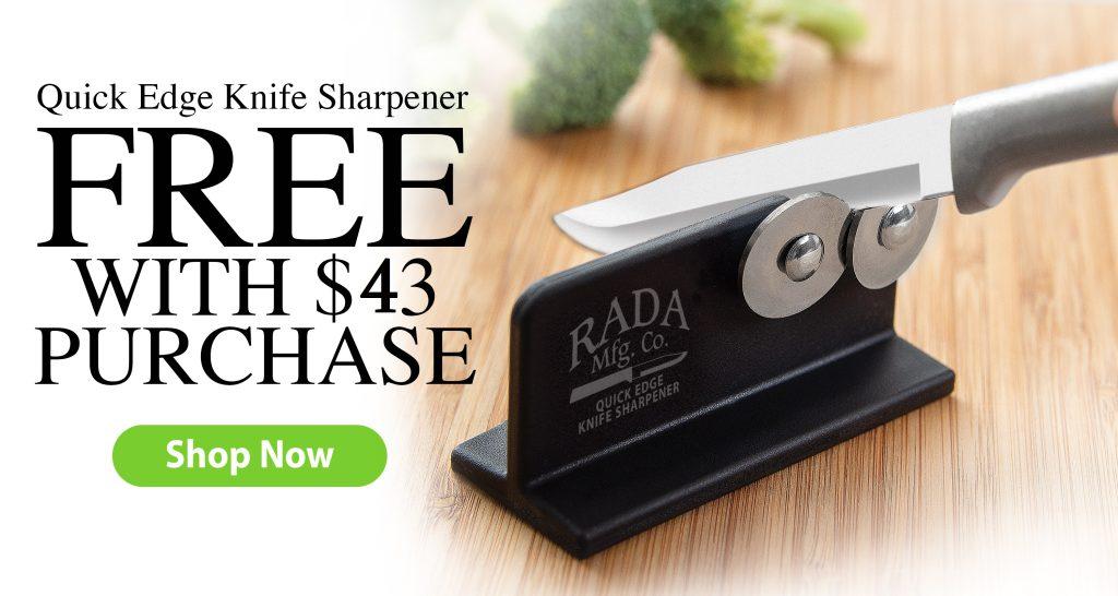 Expires 1/15/23 at 11:59 pm EST. Limit ONE use per customer. Offer valid on purchases made on 1/07/23 thru 1/15/23. Valid only on purchases made on the Rada Knife website. Cannot be combined with any other offer. Must have one R119 Knife Sharpener in cart at checkout with an additional $43 of product.