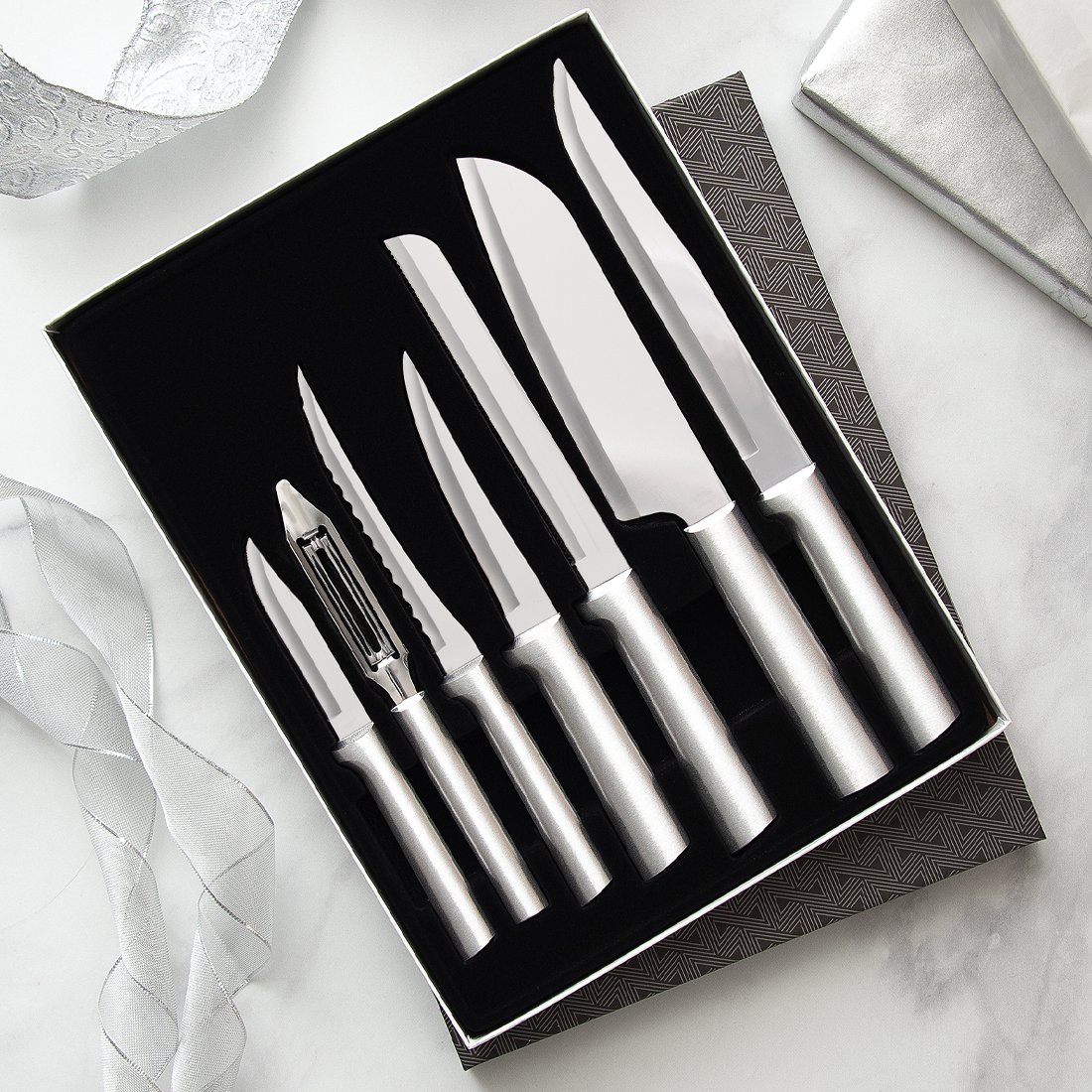 This Ambrosia Maple Deluxe Knife Block is Handmade using Ambrosia/Wormy Maple from Custom Country Woods. This Deluxe Knife Block Set was designed to fit Rada’s Starter Set (s38) and Starter Set 2- (s48) along with 6 additional slots that can be used for the Rada Steak Knife Set (s6s) or 6 paring knives of your choice. 20 various size slots with one vegetable peeler slot.
