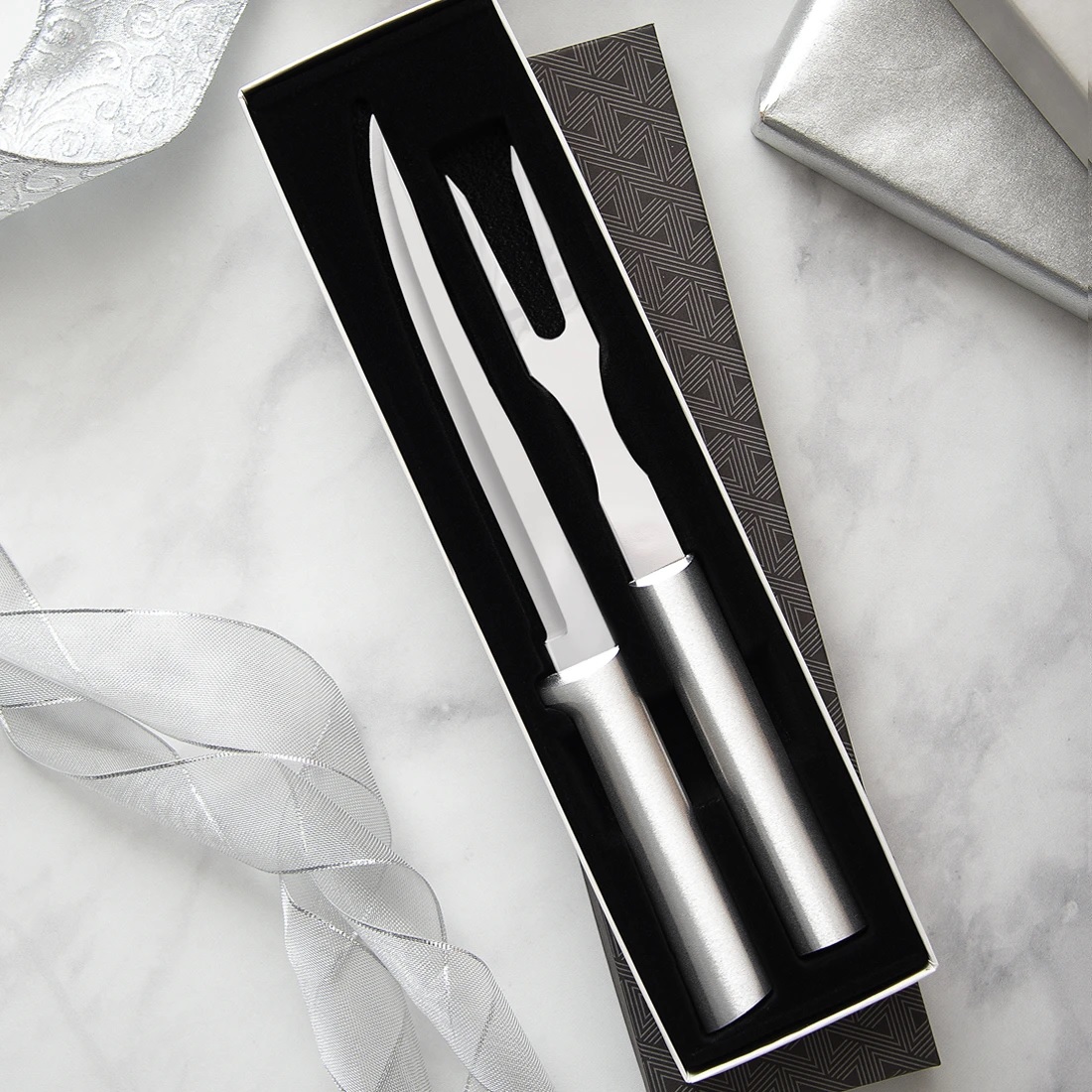 Comes with Rada Cutlery\’s Carver/Boner Knife and Carving Fork