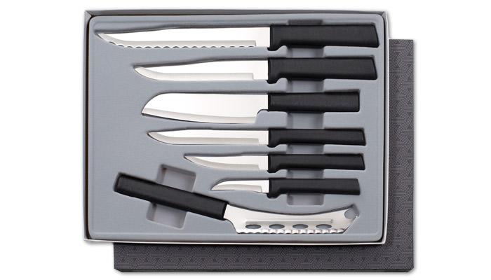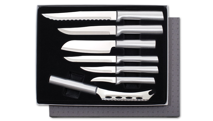 This set comes with the Cheese, Granny, Heavy Duty, Utility/Steak, Cook’s Utility, Stubby Butcher, and Serrated Slicer knives.